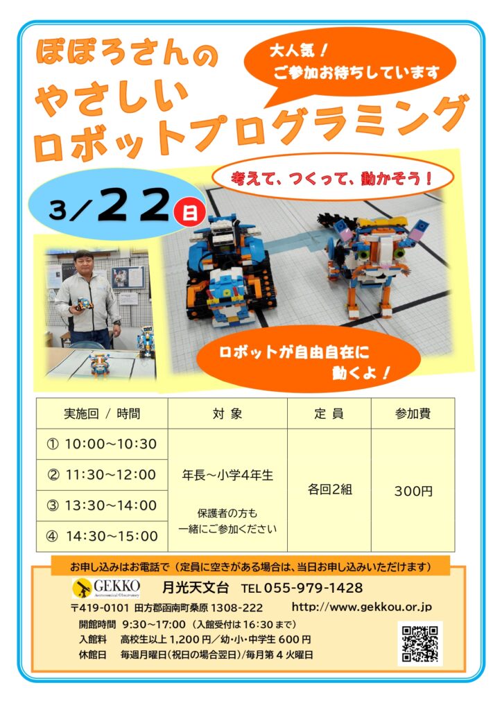 「ぽぽろさんのやさしいロボットプログラミング」開催のお知らせ