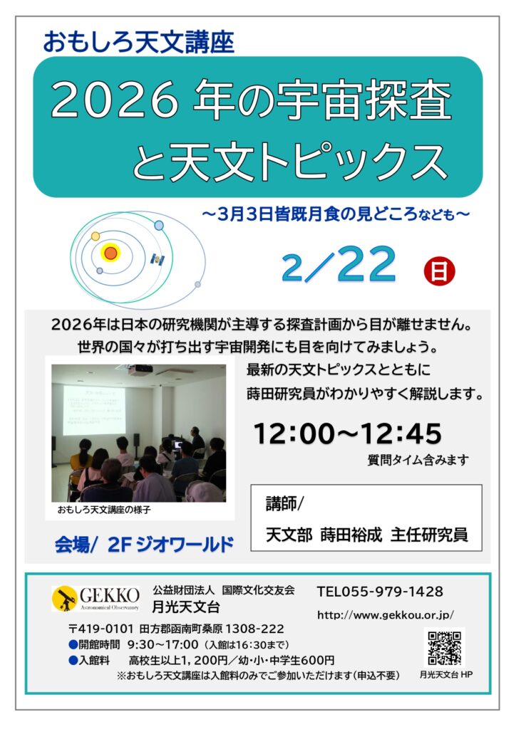 おもしろ天文講座「2026年の宇宙探査と天文トピックス」開催のお知らせ
