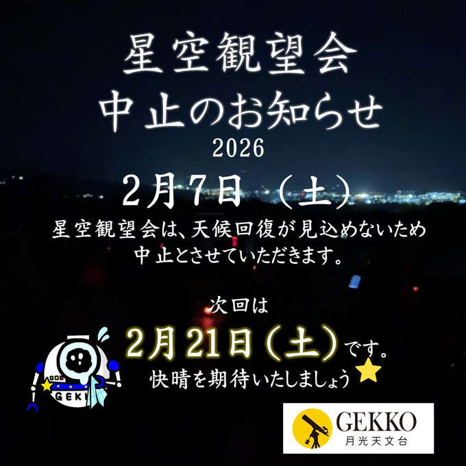 2月7日(土)星空観望会 中止のお知らせ
